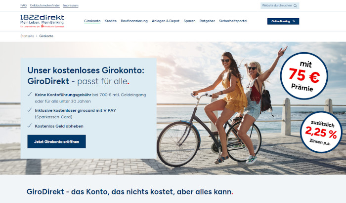Wer jetzt ein Girokonto bei der 1822direkt eröffnet und als Gehaltskonto nutzt, zahlt keine Kontoführungsgebühr. Zudem erhalten Neukunden eine Prämie in Höhe von 75 Euro sowie ein kostenloses Tagesgeldkonto mit einer attraktiven Verzinsung.