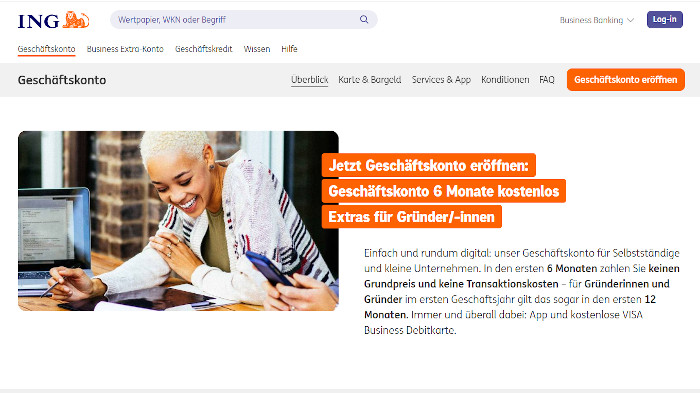 Neukunden, die jetzt ein Geschäftskonto bei der ING eröffnen, zahlen 6 Monate lang keine Kontoführungsgebühr – für Gründer ist das Konto sogar 12 Monate lang kostenlos.