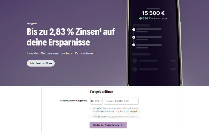 Der schwedische Zahlungsdienstleiser Klarna bietet auch ein Festgeld-Angebot an. Kunden mit dem Festgeld Plus Konto erhalten attraktive Zinsen auf ihre Einlagen. Die Kontoführung ist kostenlos.