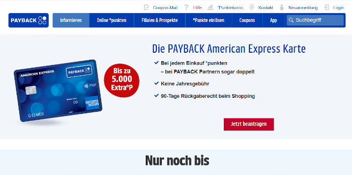 Zeitlich begrenzte Sonderaktion: Neukunden erhalten aktuell 5.000 Bonuspunkte, wenn sie die Payback Amex Kreditkarte bestellen! Die Aktion läuft bis zum 15.02.2026.