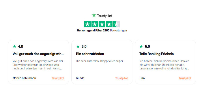 Die Kunden loben insbesondere die benutzerfreundliche Banking App, die es einfach macht, Bankgeschäfte zu erledigen und Ausgaben zu verwalten. Viele Verbraucher schätzen auch das Engagement des Unternehmens für Nachhaltigkeit und die Möglichkeit, mit ihren Finanzen einen positiven Beitrag zur Umwelt zu leisten. Die Möglichkeit, Geld zu sparen und anzulegen, wird ebenfalls positiv hervorgehoben.