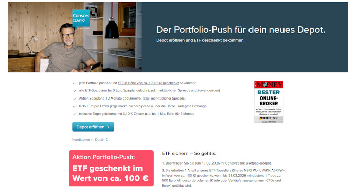 - Beantragen Sie bis zum 17.02.2026 Ihr Consorsbank Wertpapierdepot.