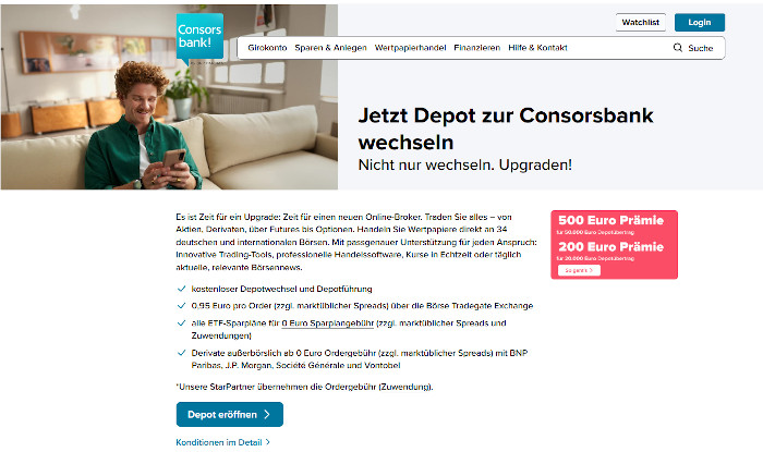 Ab 27.11.2025 bietet die Consorsbank Neukunden eine Prämie, wenn sie einen Depotwechsel inklusive Depotübertrag vornehmen.