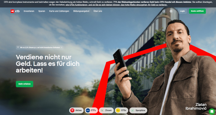 Als Kunde des Online-Brokers XTB profitieren Sie von Zinsen auf nicht investiertes Guthaben. Für Einlagen in Euro auf dem XTB-Konto erhalten Neukunden aktuell 2,3 Prozent Tagesgeld-Zinsen, für Guthaben in US-Dollar sogar 4,2 Prozent.