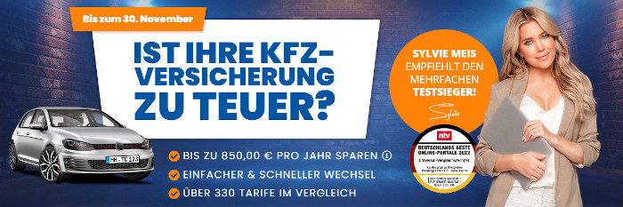 Hier geht es zum Tarifcheck-Kfz-Versicherungsvergleich (aktuell kann man bis zu 850,- € sparen!)*